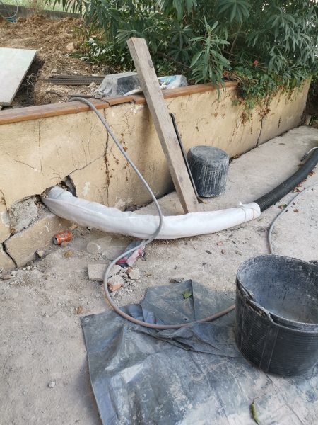 Muchísimas gracias por tu respuesta. Nos pensábamos efectivamente que algo no hicieron bien, porque en 28 años nunca había pasado esto y al hacer las obras, de repente comenzó a entrar agua. Hay un tubo de drenaje, creo que debajo de la acera, pero no estoy segura y tampoco de la profundidad, pero me temo que no esta bien colocado visto el resultado.