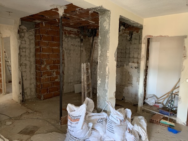 ( en la foto se refleja dicha tubería y el techo de ladrillo sobre el habría que aplicar la espuma, es una foto del inicio de la obra, ahora dicho baño se encuentra alicatado y finalizado)