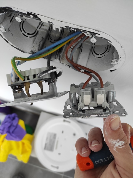 Buenas! Quiero anular un enchufe + interruptor de una habitación, ya que voy a poner un armario donde está. El problema es que si lo quito sin más no me funciona el otro interruptor de la habitación, por lo que entiendo que está conmutado. Me gustaría saber como unir los cables para que funcione el interruptor que queda en la habitación. En la foto se ve los cables que entran en ambos mecanismos.