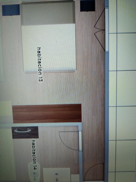 La entrada al dormitorio se hace a través de un pequeño pasillo de más de 1'5m de largo por 1de ancho, quedando el armario a la derecha.
