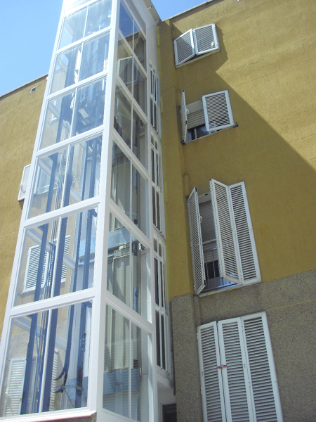 Ascensor en fachada para subir a ático que está en cuarta planta (dejando hueco en plantas para el día de mañana)