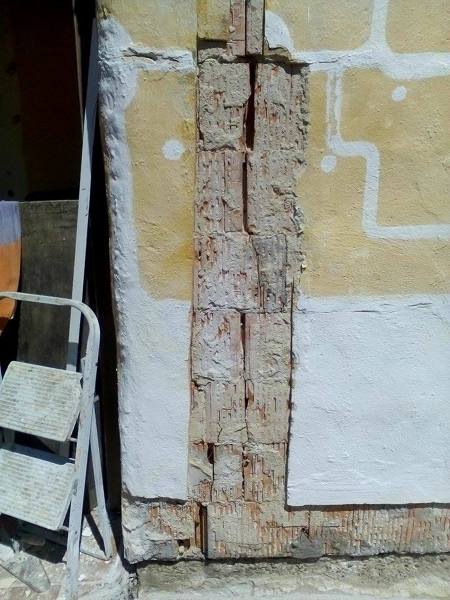 -La fabrica es antigua?, parece ser de bloques de termoarcilla, aunque de cerca parecen ladrillo perforado, (habria que verificar que tipo de fabrica es. Pero de cualquier forma apenas hay llagas, están colocados las piezas casi en seco. Puede ser un problema de origen.
