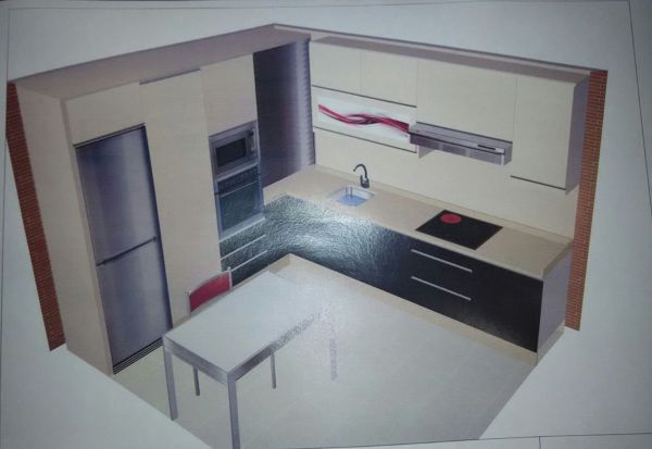 Adjunto mando una foto de mi cocina en si tal cual me han echo el diseño a ver que le parece?es que estoy en duda no se hay algo que no me convence porque veo en ella la tipica cocina y no se quizas busco algo mas moderno no se .