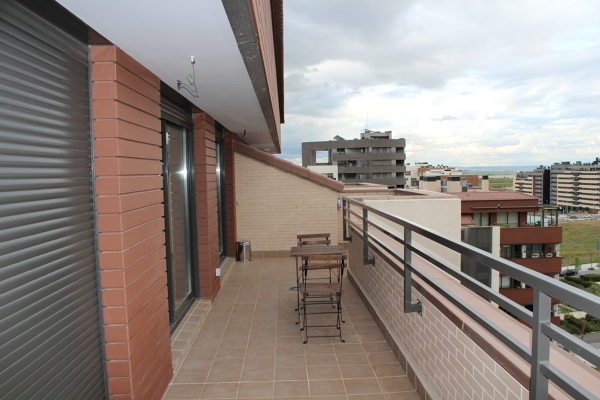 En primer lugar, observó que puede ser un duplex, ya que en la segunda foto parece que al final de la barandilla hay en ladrillo cara vista como el final de una escalera o por lo menos una zona de paso...