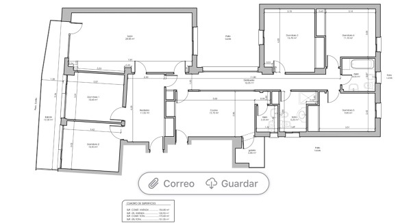 Los dos dormitorios que están al lado del salón se convertirían en uno y sería despacho/estudio. Y en la parte del resto de dormitorios me gustaría dejar 3 dormitorios y uno de ellos que tuviera vestidor y baño, aparte de los otros dos baños que tiene la vivienda, cómo lo veis?