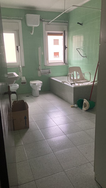 Es un piso segundo en un edificio de 1966, parece ser que originalmente en la zona de abajo en los dibujos había un lavadero con un inodoro al lado de la ventana, quedando un lavadero estrecho, supongo de 1 m de ancho. La parte de arriba sería el baño original que es lo que yo quiero poner para uso personal entrando por la habitacuión que está en la pared que en los dibujos queda arriba.