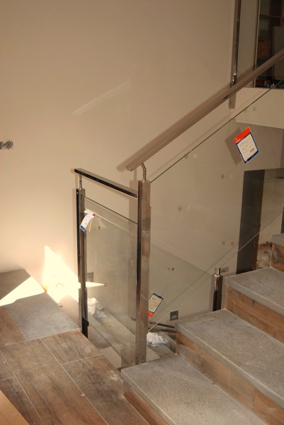 Con acero inoxidable y cristal se pueden crear infinidad de formatos de barandilla, incluido el que tu describes.