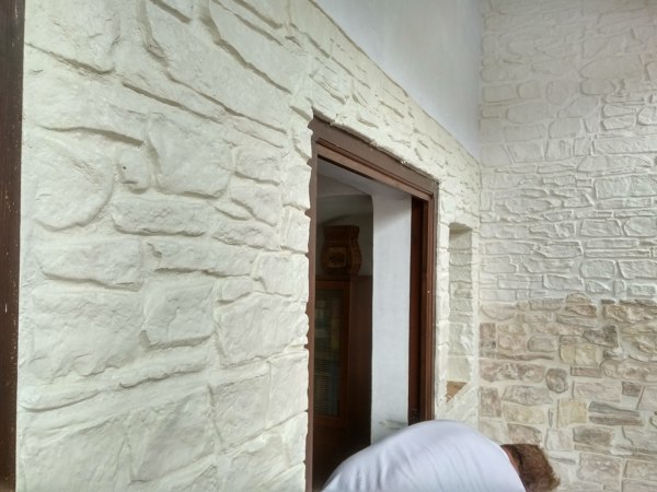 Este cabecero está fabricado en el sitio, con pasta de alto espesor y moldes. Luego se repasan y se pintan las piedras una a una. Para más información no dude en contactar conmigo. Un saludo.