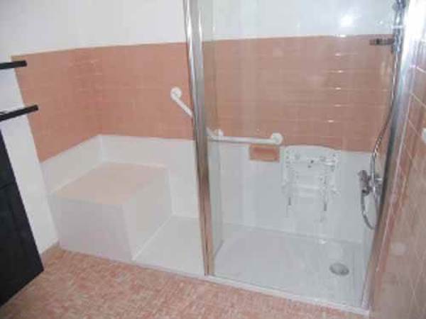 Al ser baño de minusválido sería hacer asiento de azulejo y el plato de loza ya que de fibra no es buena idea