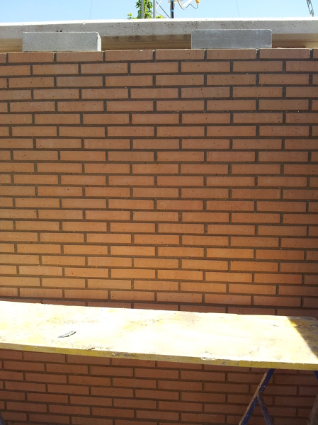 Efectivamente Ion. Fábrica de medio pie de ladrillo cara vista.