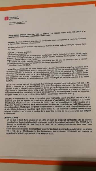 Adjunto información adicional del Ayuntamiento de Barcelona para cambios de uso de local a vivienda en la ciudad.