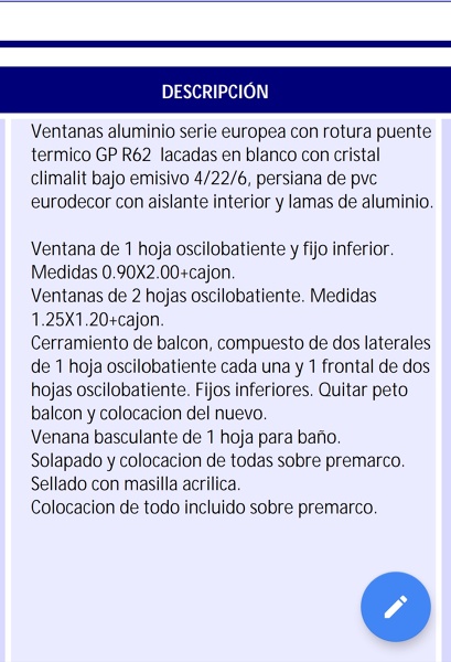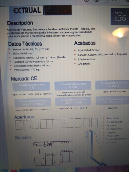Buenas noches de nuevo. Ya tengo por fin decidido el presupuesto, a menos que me digáis lo contrario. Al final voy a poner unas ventanas extrual de la serie E-36 con RPT, 4-16-4 planitherm 4S con cajón de PVC, guías con RPT y lamas de aluminio blanco rellenas de espuma de poliuretano. ¿Qué opináis? Me han dicho que son de buena calidad.