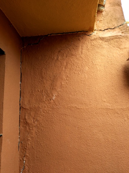 Las fisuras se recogen periódicamente y a los 30/40 días vuelven a salir, y asi 15 años. La separación entre la casa y la parte alta de los muretes ya están en torno a los 12/15 centímetros, (prácticamente 1 cm por año).