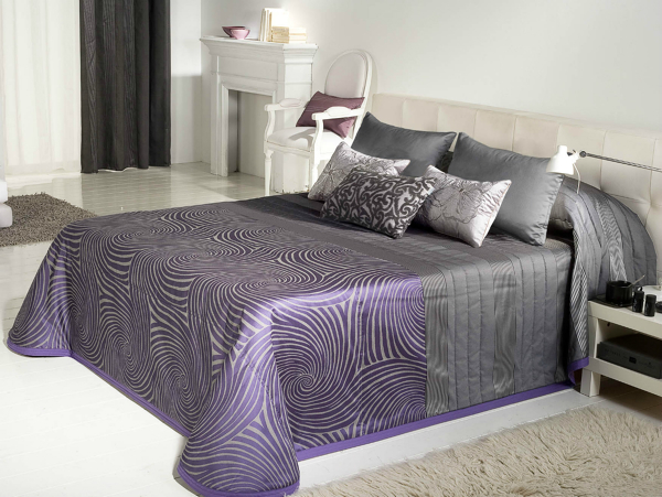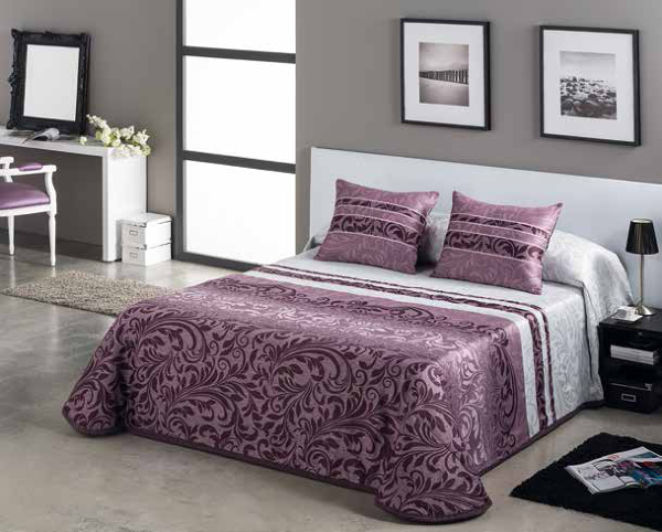 ¿Dónde comprar la colcha malva y gris de la foto?