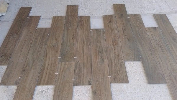 Está colocación de suelo imitación madera de 120x20 colocado a 1/3 de pieza en zig-zag es correcto?