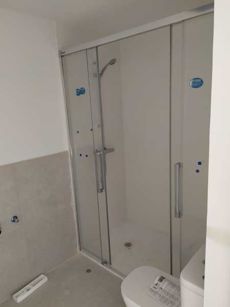 Es solo colocar un plato de ducha y adecuar los mecanismos y colocar una mampara que ya tiene