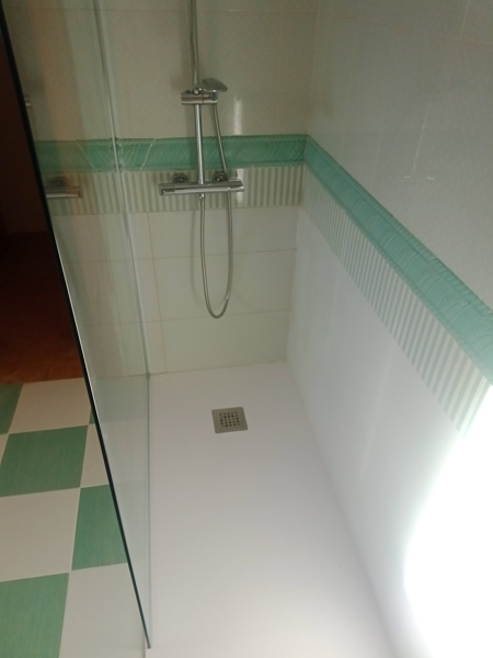 En este trabajo se incluye el plato de ducha de 70x140cm, desagüe e instalación de mampara.