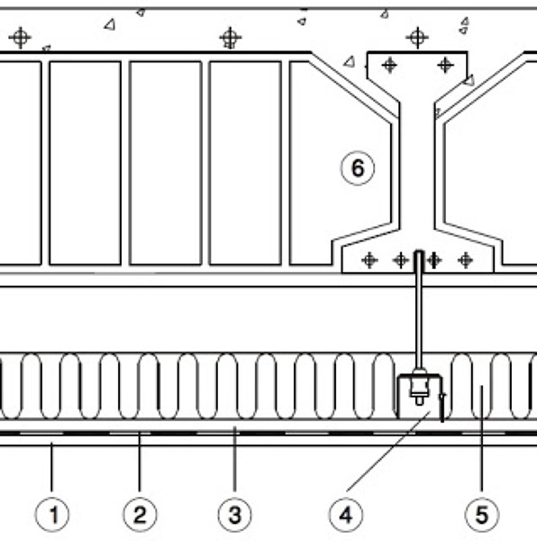 Se sujetaría a las viguetas mediante perfilería auxiliar anclada.El sistema de cuelgue para su fijación a las viguetas del forjado soporte se emplean tacos de expansión M-6.