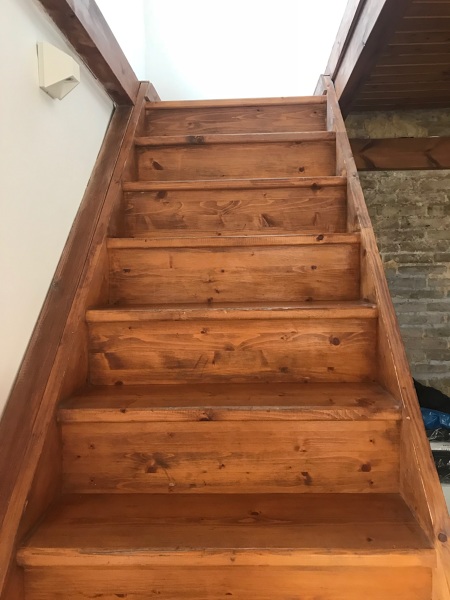 Quiero lijar estas escaleras y no se muy bien que materiales usar. La lijaré y luego la barnizaré, es de un uso moderado.