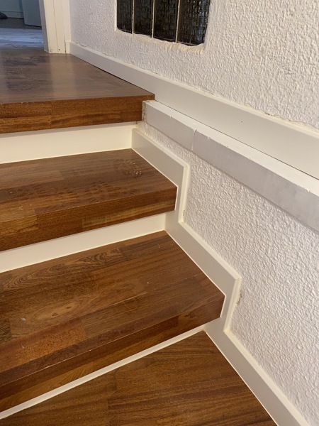 Es un rodapie de dm que cortó y pintó sin mas, juntas separadas, acabado horrible, no se si contratar otro instalador y hacer el rodapie de dm otra vez o cambiar el material del mismo