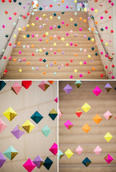 Claudia yo diría que son pirámides invertidas y pegadas, pasas una aguja con hilo y anudas en los extremos, o le pones algún de pegamento o algo así para que se mantengan en la posción, creo que es así