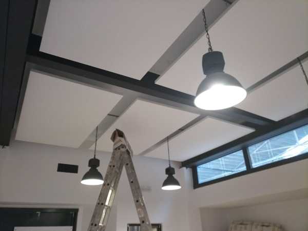 Hay multitud de solucionses para resolver el problema de un tiempo de reverberacion elevado. Se trata de introducir acabados absorbentes a los paramentos existentes por tanto va a tener que integrarse con la decoracion. Acústicamente se escogeran materiales con coeficientes de absorcion elevados y superficies calculadas para conseguir la bajada de la reverberacion deseada. En Innovacustica hacemos ensayos de la reverberacion (en muchas ocasiones) y ejecutamos la obra. La opcion de islas absorbentes es bastante buena porque multiplicamos por 2 la eficacia del materal absorbente ya q trabaja tambien la parte superior de la isla (para ello hay que tener altura)