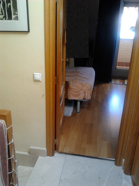 Si es en la Comunidad de Madrid. La planta tiene el techo abuhardillado, desde la zona de la puerta hacia la zona de las terrazas, por lo que dificulta las opciones.