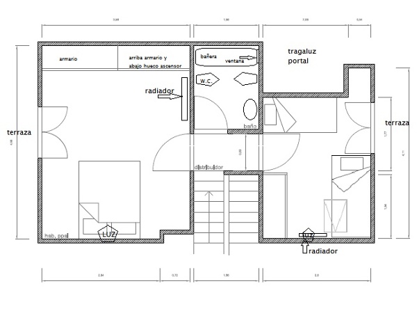 De hecho, la idea que tengo ahora mismo en la cabeza, puede que le permitiese tener hasta dos baños... pero es que el plano y cotas no ven bien en la foto adjunta.