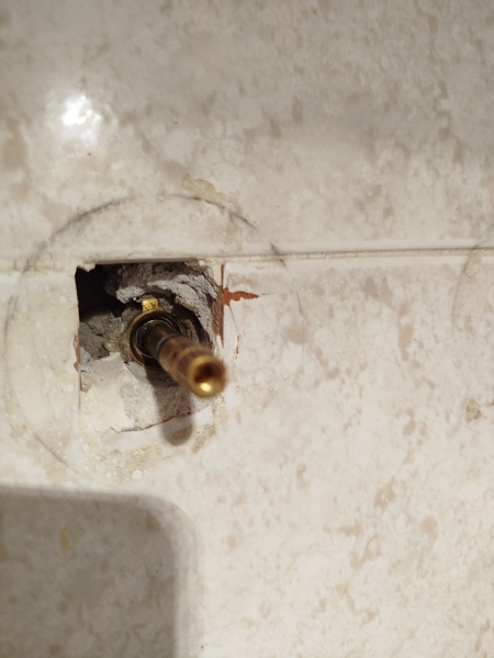 Hola. Efectivamente, la válvula está muy profunda, cubierta por el mortero. Hay que liberar y desenroscar