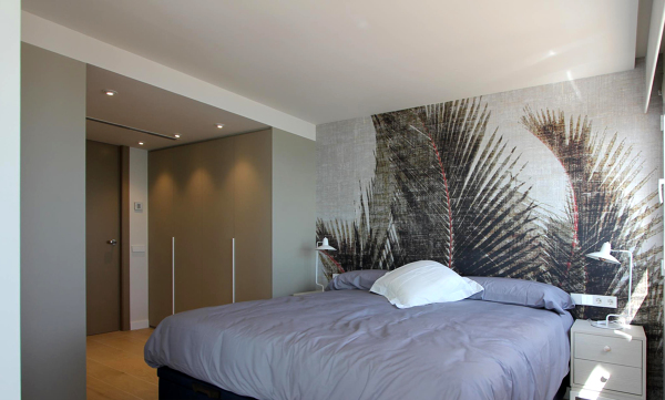 La definición de la fotografía no da para saber si es papel pintado, vinilo... pero seguro es una de esas dos opciones.