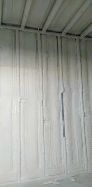 yo pondría perfilería para colocar pladur echaría el poliuretano y luego lo colocaría el pladur lo taparía perderías 7 cm pero sería más eficaz