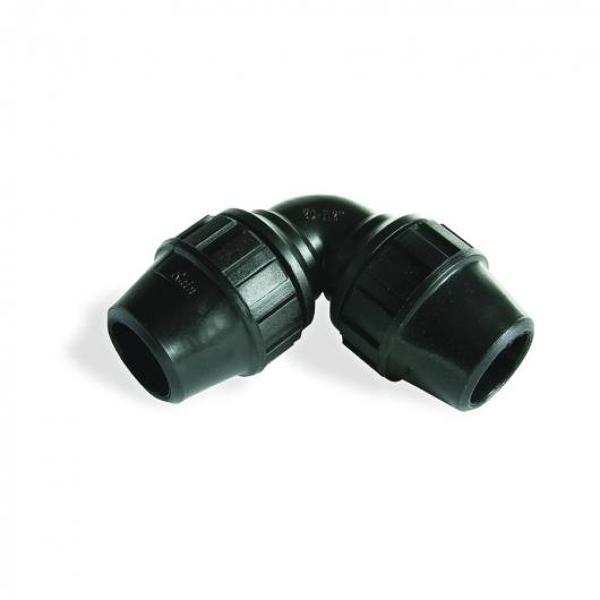 Los codos de 90 en polietileno los puedes hacer con la pieza de compresión de la foto, añadir un tramo de tubo y al final poner la pieza de entronque.