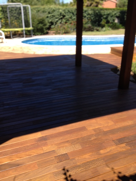 Hola, la valla es de madera tropical de Ipe. El precio es de 130 € m2. Un saludo