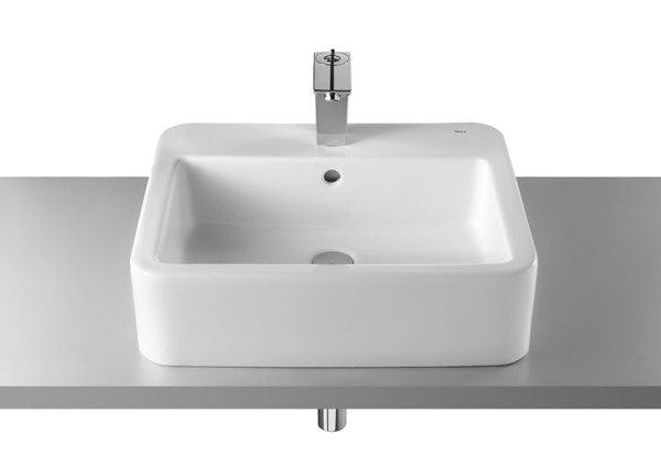 Normalmente estos tipos de lavamanos están concebidos para ir sobre una encimera de obra, mármol u otro material, muebles que tengan la encimera para colocar encima puedes encontrar de la misma casa Roca los de la colección Heima te adjunto el enlace para que puedas verlos por Internet www.roca.es/catalogo/colecciones/#!/soluciones-lavabo-mueble/heima