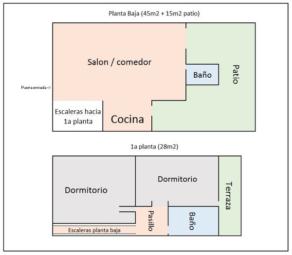 - Tirar varios tabiques (ver detalle en adjunto) para integrar la cocina en el salón/comedor y volver a añadir patio (como estaba originalmente)