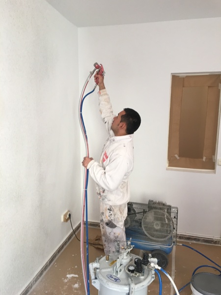 sería pintar sea gotele o liso saneando las paredes q hagan faltas. la pintura sería plástica pero podríamos quedar y mirar bien lo q hay q hacer y intetariamos apretar el presupuesto lo más posible gracias