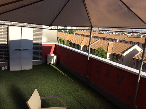 Las paredes tienen un rodapié que habría que quitar y la superficie a alicatar serían unos 11 metros cuadrados. Y la superficie del suelo para la tarima son 20 metros cuadrados aprox. Teniendo en cuenta que hay que respetar las inclinaciones del suelo original para que el agua vaya al desagüe y que no se puede taladrar en el suelo ya que es cubierta de la comunidad.