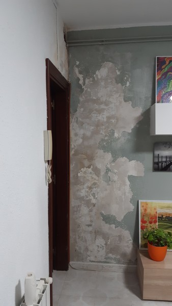Si ya se ha arreglado la causa de la humedad, hay que picar hasta el ladrillo y enlucir de nuevo, una vez seco, listo para aplicar pintura.