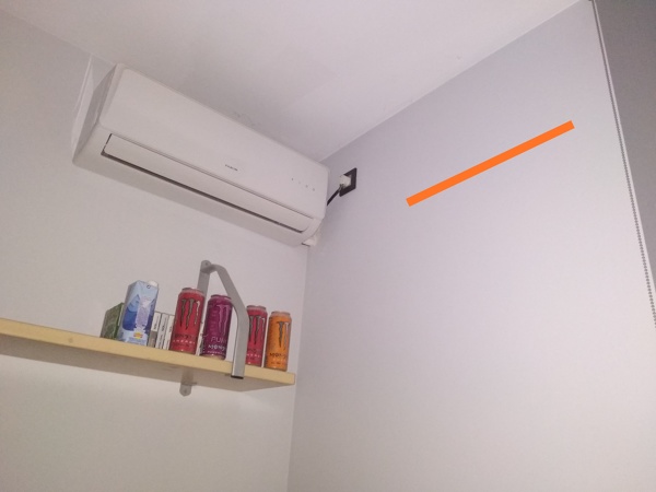 Necesito cambiar la unidad interior de AA del dormitorio de mi hijo. Se instaló en el lugar más cómodo para el instalador, pero el chorro de aire da directo sobre el escritorio y la cama, en cualquier posición y velocidad. Sólo nos queda la opción de resituarlo (donde está la línea naranja), pero quisiera saber aproximadamente qué podría costar la broma.