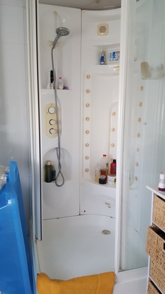 En el baño hay una cabina de esquina de 1m2, que nos gustaría cambiar por una ducha de 140x100cm más 67cm de zona para secarse (no sé como se llama este tipo de obra de ducha). Las baldosas parecen estar bien en toda la zona de pared, pero de ser necesario cambiar algunas, tengo una caja entera que sobraron del aseo y me gustaría utilizarlas. También quisiéramos incluir la instalación de una mampara fija para la zona de ducha y obviamente la instalación de la ducha y fontanería necesarias.