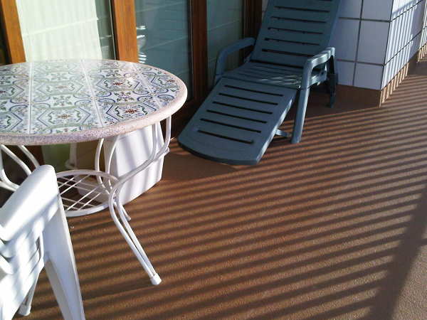 la impermeabilización se realizaría sobre el solado actual sin necesidad de escombros; habría que fijar las baldosas que estén sueltas; las fotos son de impermeabilizaciones similares sobre baldosa