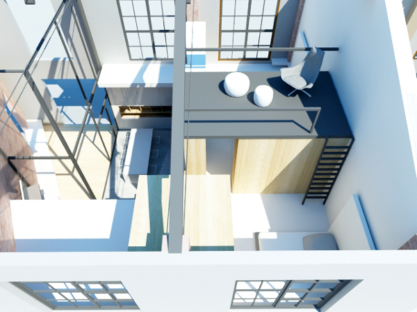 Adjuntamos imágenes virtuales de uno de los últimos proyectos realizados. Propuesta de diseño y proyecto de ejecución para la rehabilitación de un taller para futura vivienda.