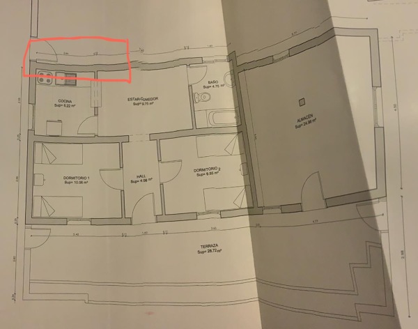 Es una vivienda terrera de solo una planta en una finca, y me me gustaría derribar la fachada para hacerla acristalada. El espacio que pensaba era de aproximadamente 3,5 metros.