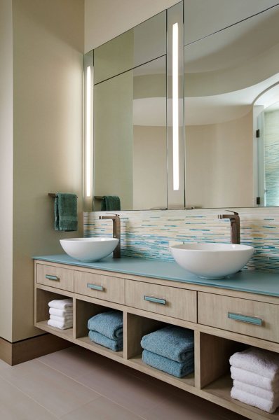 Me gustna mucho los muebles de baño en los que los lavabos van sobre la encimer,a pero es muy difícil encontrarlos.