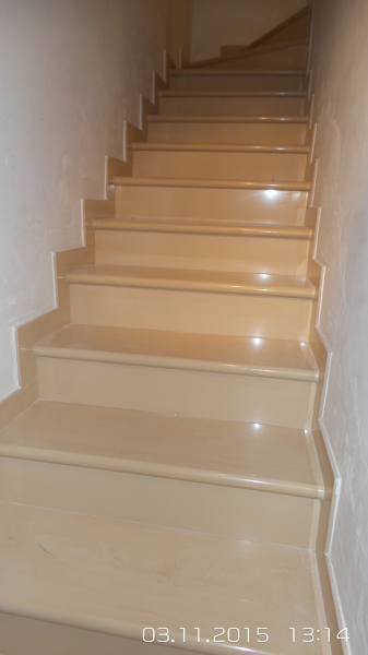 Adjunto fotografías de una escalera y solado en planta sótano de una vivienda unifamiliar, reformadas con este material y como puede ver, el acabado es espectacular.