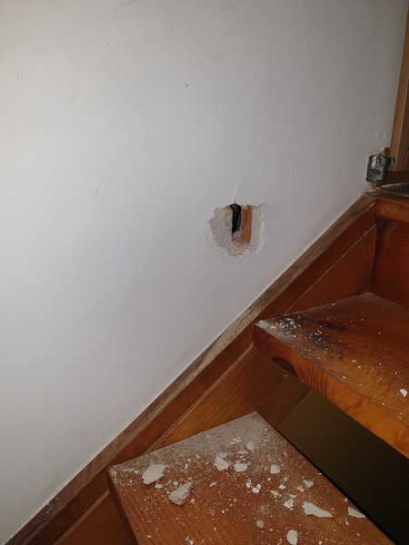 Ellos han querido repararlo al completo y pintarle la pared, pero la propietaria se ha negado alegando que el desperfecto a podido causar daños estructurales afectado a su escalera, aclaro que los albañiles estaban picando una pequeña roza por nuestra pared para subir unas tuberías.