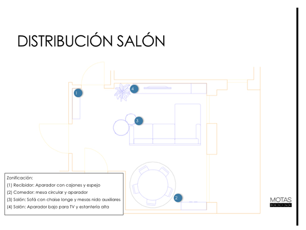 Ya que la zona mas cómoda, es donde se sitúa el sofá, y tienes una buena disposición de pared para la televisión.