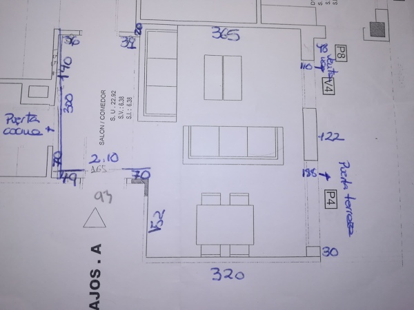 Tengo muchas donde colocar en mi salon mesa, tele y sofa. Es una planta baja con acceso a terraza, ventana y junto con el recibidor(zona de paso). Puedl ppner la Tv en todas las paredes, y me gustaria un sofa grande, un mueble normalito y algun tipo rrcibidor y mesa contenida. Adjunto plano, pone las medidas de todas las paredes, por si es de ayuda.