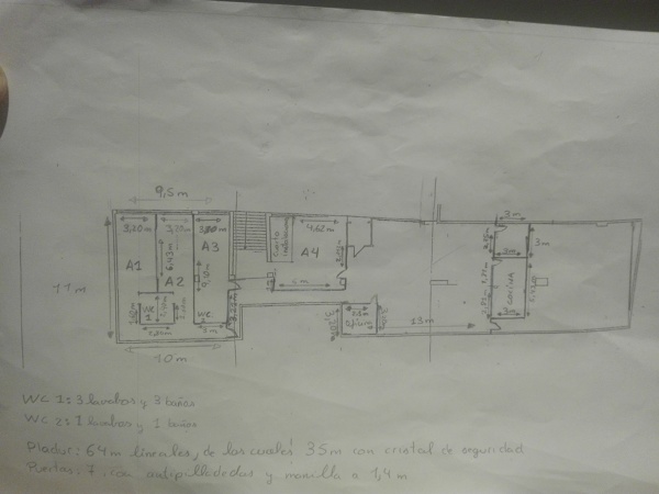 El local de altura tiene 3 metros, y los metros lineales de las divisiones serian 64 metros lineales, de los cuales necesitaría que 35 de ellos tuvieran cristal de seguridad(si se rompe no corte a nadie) de un metro de alto.