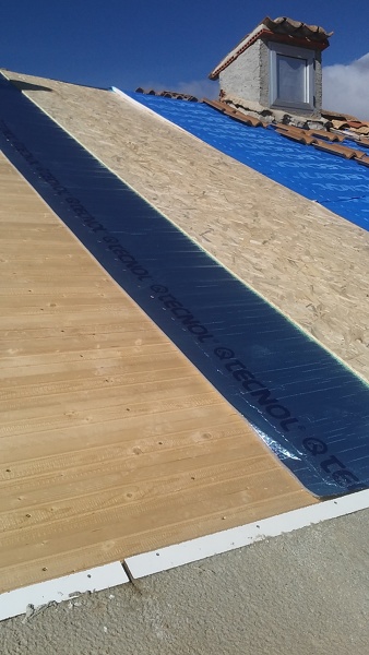 aqui te pongo como tienen que ponerse las tejas, cruzadas entre lineas y los aislantes que solemos poner en tejados de madera